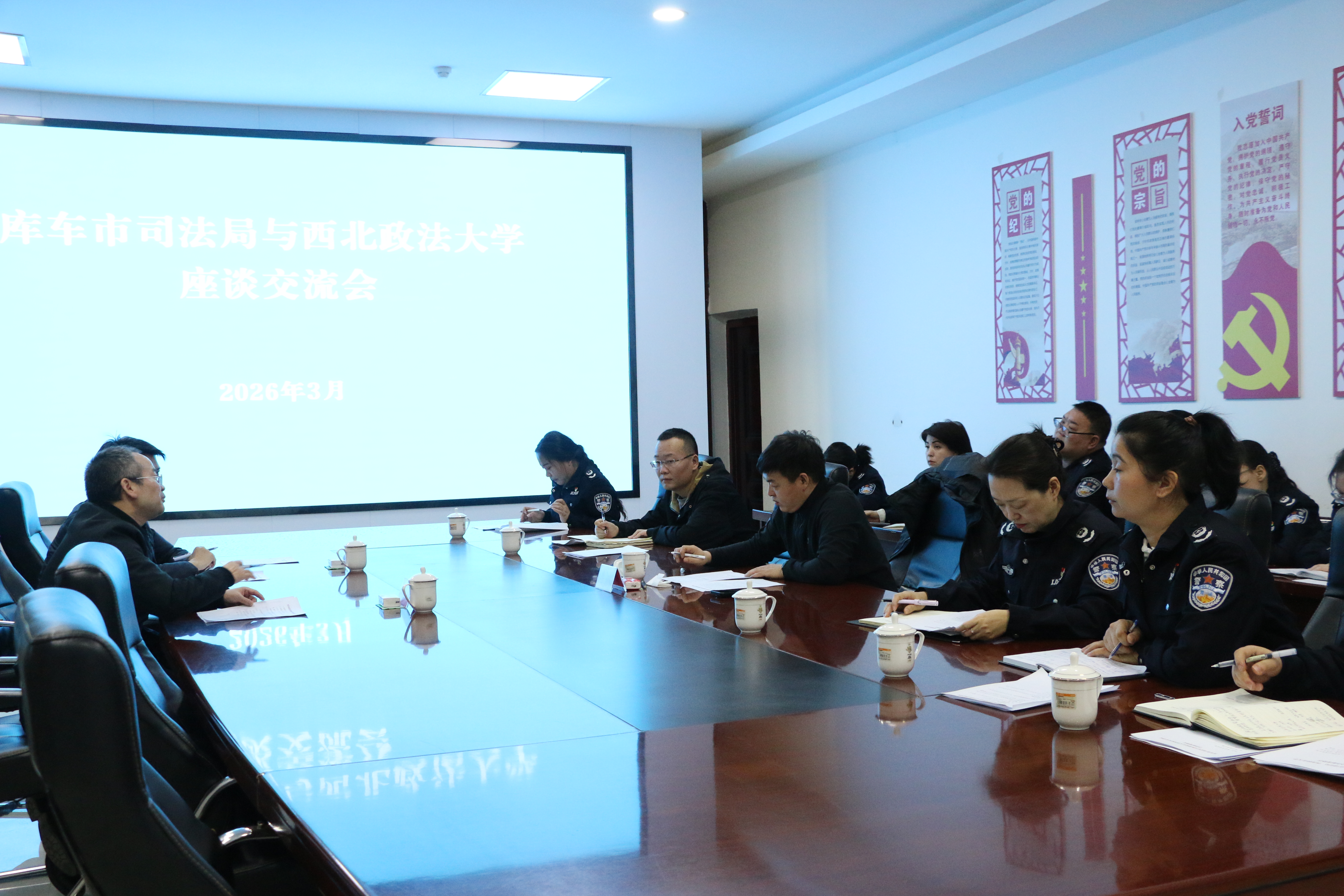 座谈会上,双方围绕深化合作、人才对接等议题深入交流。舒洪水详细了解库车市司法局在法治建设和司法行政领域的实践成效,并表示期待以调研为契机搭建常态化协作平台,推动法学教育与法治实践的深度融合。