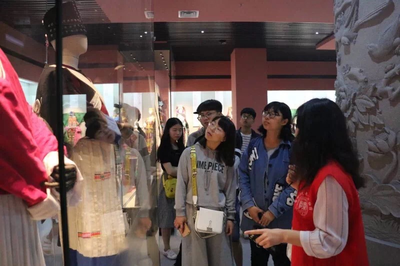 上午九时,在讲解员的带领下,依次参观了教育博物馆、妇女博物馆和书画艺术馆。教育博物展馆里有大量的与学校教育息息相关的文物文献,反映了中国社会从秦汉时期直到新中国成立以后的教育发展情况。同学们在参观了这些古籍文献之后,对中国的教育史有了更全面,更直观的理解。妇女文化展馆分为五个部分,从“她的故事”到“中华嫁衣”,中国妇女在不同历史时期的生活方式与情感世界呈现在了我们眼前,是中国历史上妇女文化随时代变迁的一种体现。书画艺术展馆展示了几千年来,中国文人对于书画艺术的追求。文人通过作画写诗的方式对自己的理想加以抒发,对自己的人格加以阐述。这里收藏着大量清代,民国,近现代等时期的作品,甚至存有明宋之前的文化遗迹,楷草隶篆四体书法作品均有展现。