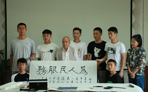 座谈会上,张逸先生将自己多年来潜心探索研究的《张逸左腕书法》、《书学逸墨》等书法理论作品赠与参会学生。反恐法学院学生邹成杰、李开兴等分别提出了自己在学习书法中的疑惑,张逸先生逐一耐心解答。座谈会结束后,几位书法家现场为同学们一展书法风采,并赐笔墨留念。书法交流阶段,各位书法家现场泼墨,向同学们赠送了“为人民服务”、“位卑未敢忘忧国”、“人间正道是沧桑”等30余幅励志书法作品。