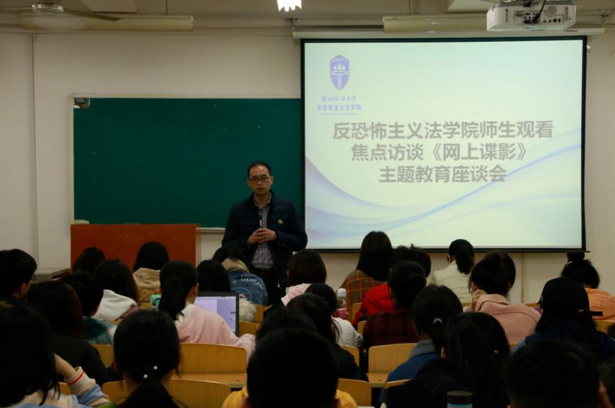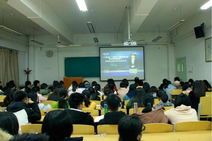 11月22日,反恐怖主义法学院组织2016、2017级学生党员、学生干部及2018级全体学生于B409、Bj31教室集体收看中央电视台焦点访谈栏目播出的专题片《网上谍影》。反恐法学院党委副书记刘妍良,学生处学生资助科上官亚敏,团委书记席捷及辅导员杨柳、贺星婵到场参加。