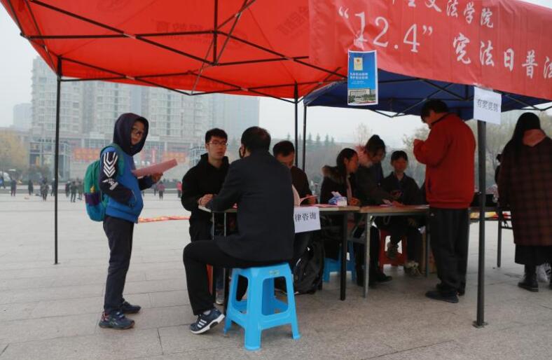 为深入学习贯彻党的十九大精神,全面贯彻落实习近平总书记全面依法治国新理念新思想,增强全体公民的宪法意识和对宪法的真诚信仰,在我国第五个宪法日来临之际,反恐法学院组织学生100余人在长安区长安广场开展宪法日普法宣传活动。