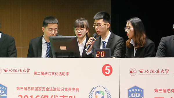 12月12日,由我校教务处、反恐怖主义法学院举办的第三届总体国家安全法治知识竞赛在长安校区圆满落幕。反恐怖主义法学院、民商法学院有关党政负责同志出席活动。竞赛评委由反恐法学院教师担任,反恐怖主义法学院师生300人到场参加。