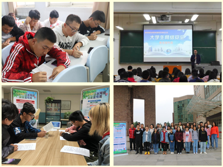 一周来,学院组织师生在宿舍区设置宣传点发放网络安全法条、义务为同学讲解网络安全基本知识、发放网络安全常识宣传单,以展板彩绘的形式普及网络安全知识。在教学楼摆放网络安全海报,组织学生开展“如何正确使用网络、提高安全防范意识”主题沙龙活动。以新生入学教育为契机,结合学院保密意识教育,组织学生开展了网络安全知识答题以及大学生网络安全知识讲座等活动。通过生动的讨论和案例分析同学们深入了解网络陷阱与隐藏危险,警惕“校园贷”、网络诈骗、虚拟交友等现象,提升网络安全意识及防护技能,尤其是大学生提升网络保密意识方面具有较好的警示作用。