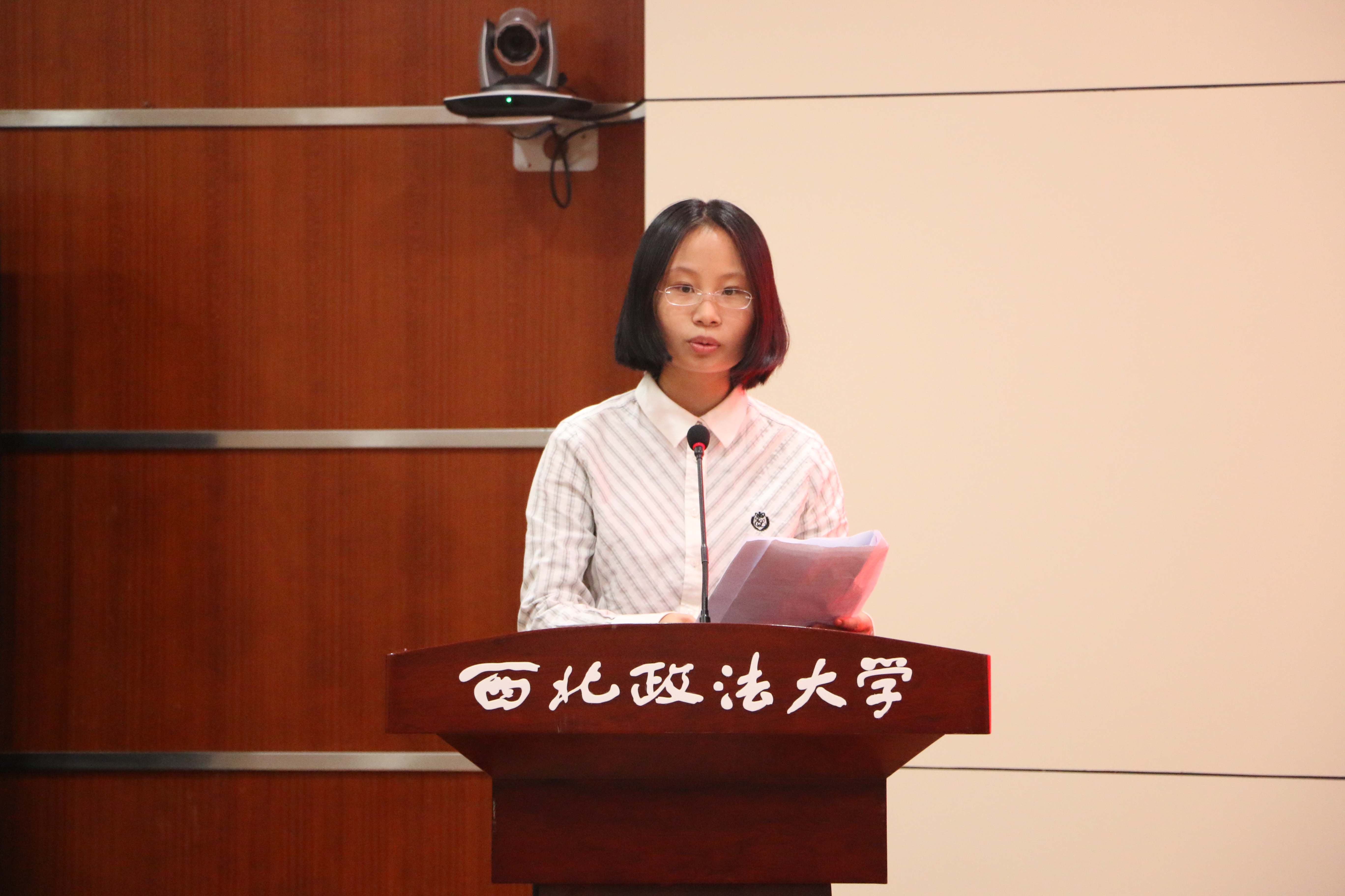 郭健璋同学代表2020级全体新生发言。她表达了来到西法大的激动之情,并对未来四年大学生活作出详细规划。她谈道:“作为反恐法学院的学生,我们需要肩负起推动国家法治建设的责任与使命,履行维护国家安全的义务,不负青春、不负自己、刻苦学习、博览群书、强健体魄。”除新生代表外,18级国家级奖学金获得者江旋同学结合自身经历,对新生们如何不留遗憾度过大一生活的问题给予了积极回应。她勉励同学们,学如弓弩,才如箭镞。不要在奋斗的年纪选择安逸,要坚定目标,严于律己,攀登知识高峰,编织理想未来。