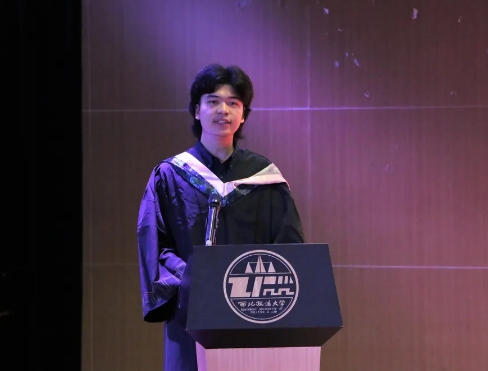 毕业生代表徐翰成同学表达了自己对母校依依不舍的心情,同时也表示自己一定会不忘学校校训、牢记学院嘱托,成为一名有理想有担当的法治人才。