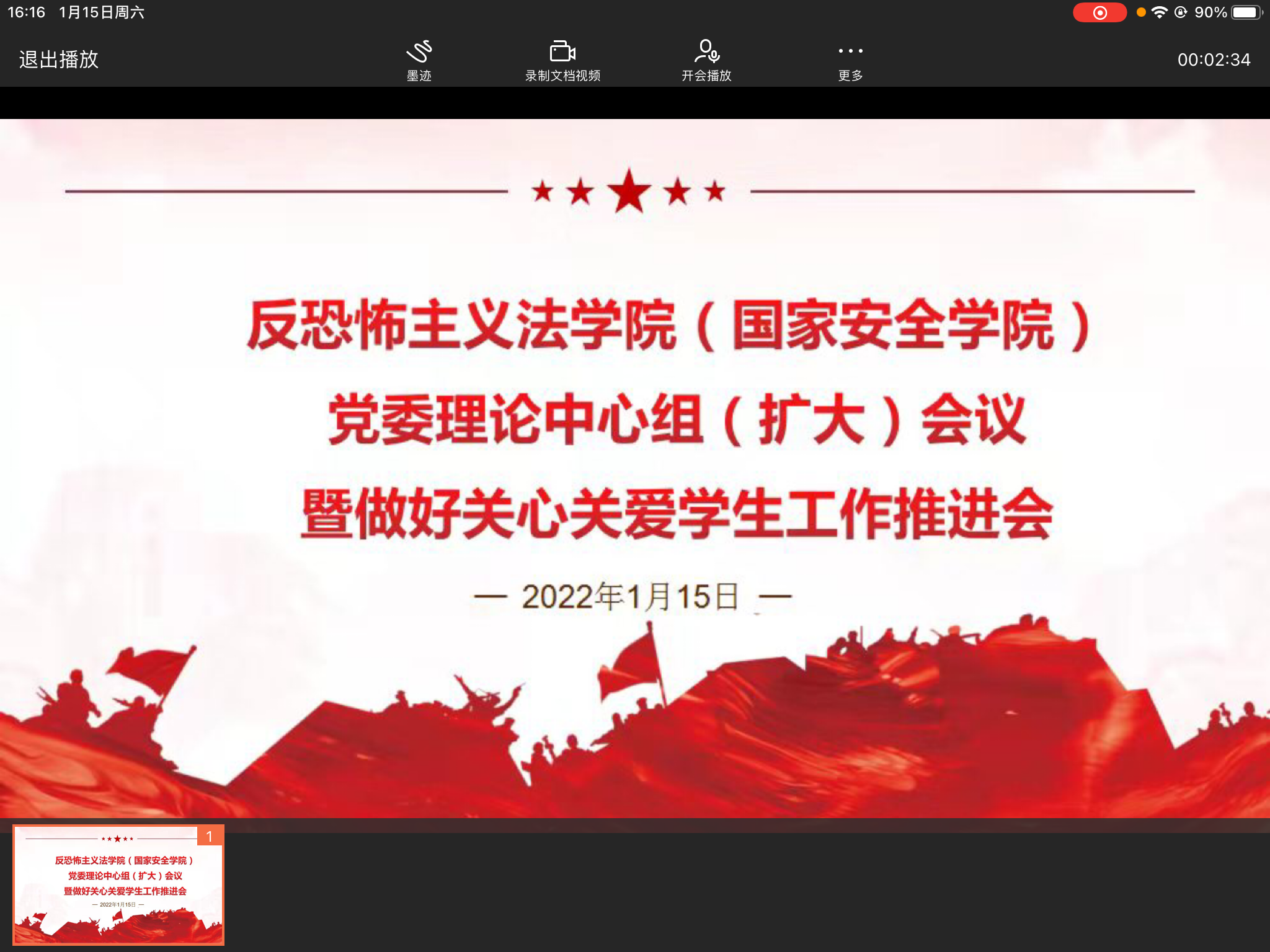)党委理论学习中心组(扩大)学习习近平总书记在省部级主要领导干部学习贯彻党的十九届六中全会精神专题研讨班开班式上的重要讲话精神,并结合校党委有关文件精神就加强学生教育引导、关心关爱学生、强化一线防控力量等进行推进工作安排。院领导班子、院长助理、各党支部书记及全体辅导员参加会议,会议由学院党委书记李政敏主持。