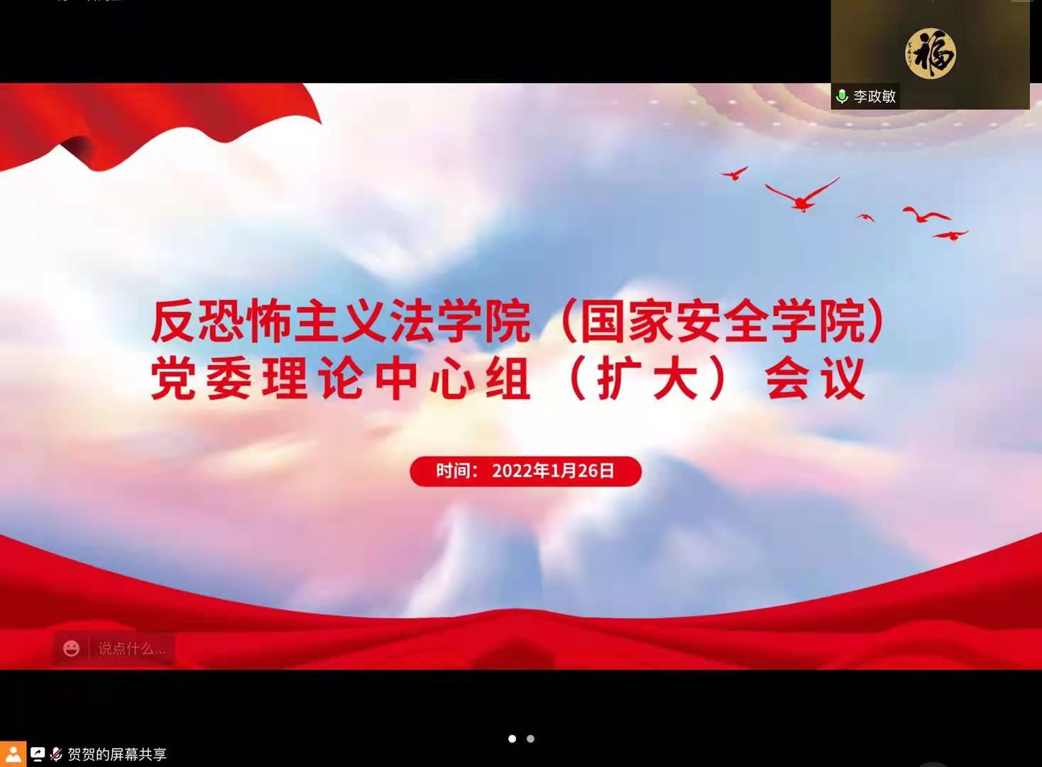 李政敏传达了学校党委1月20日党委会会议精神。全体参会人员集体观看了习近平总书记在十九届中央纪委六次全会上的重要讲话精神新闻视频,学习了习近平总书记对政法工作的重要指示、2022年全国教育工作会议新闻稿等内容。国家安全教研室党支部宣传委员李珂璐、院长舒洪水、副院长宋海彬、王东明分别围绕以上学习内容做了心得体会交流发言。