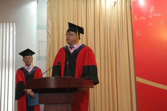 许尔锋代表毕业的首届博士生发言,他感谢母校追影猫 和各位导师,表示今后将用所学的知识指导实践,在实践中验证学术,用实践来支撑理论研究,并祝愿母校发展得越来越好。